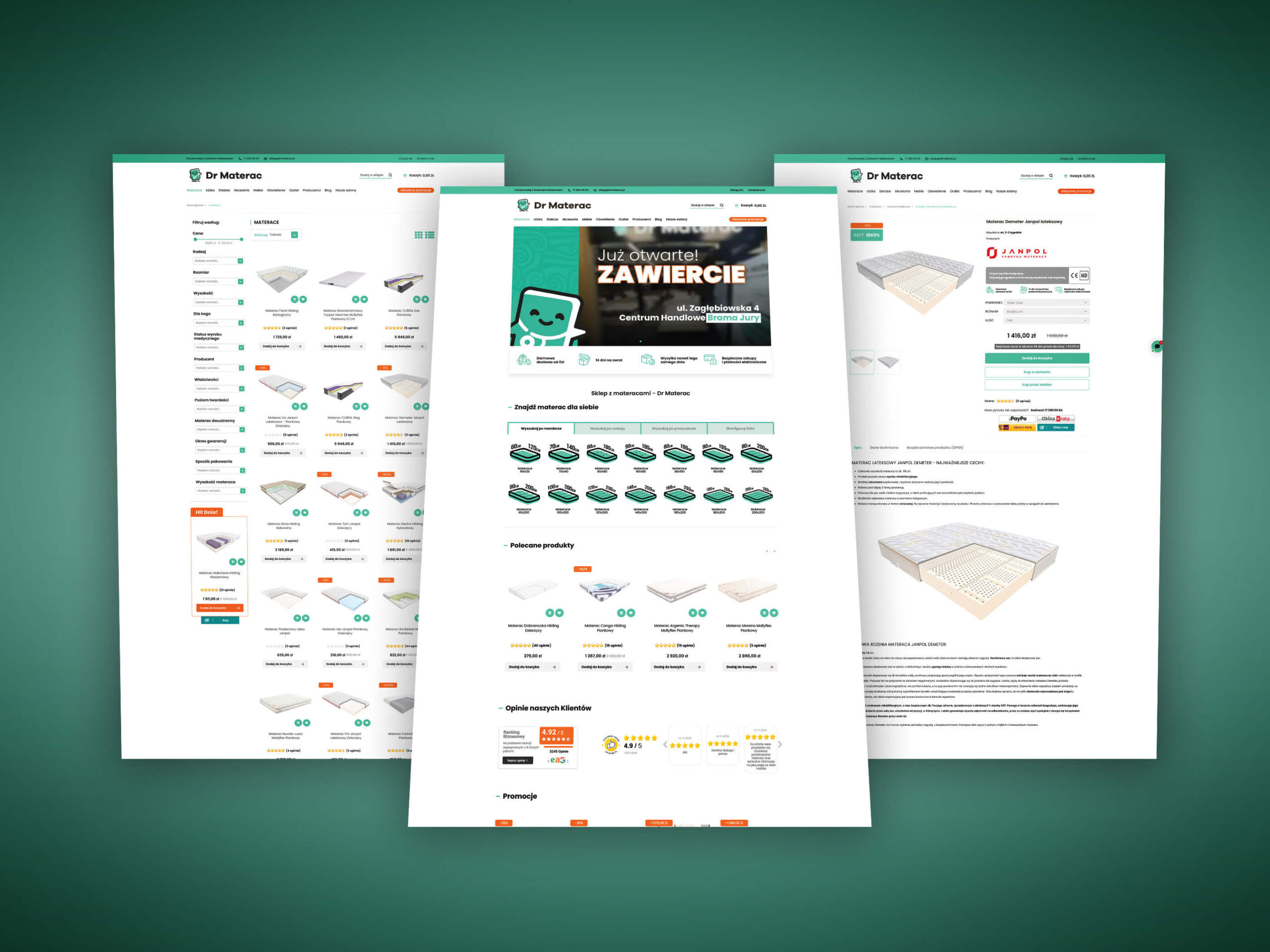 Dla marki Dr Materac przygotowaliśmy kompletny, nowoczesny sklep internetowy na systemie Prestashop. Projekt został dostarczony i wdrożony od podstaw, w oparciu o autorski layout graficzny idealnie dopasowany do charakteru branży oraz filozofii marki związanej ze zdrowym snem.